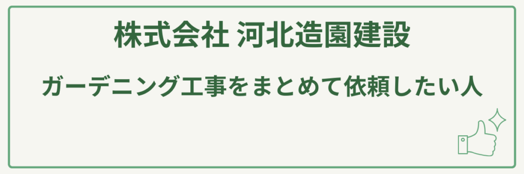 株式会社 河北造園建設は、造園工事、エクステリア工事、外構工事、ガーデニング工事をトータルで提供できる総合力が最大の強みです。