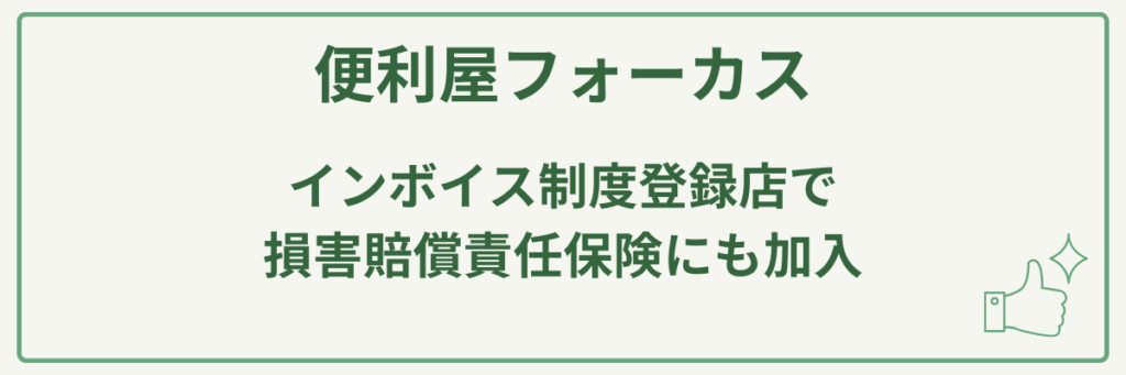 インボイス制度登録店で、損害賠償責任保険にも加入しているため、法人・個人問わず安心して依頼できます。