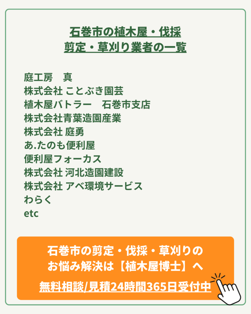 石巻市で植木屋さんを探しているなら、近くのエリアの植木屋さんもチェックしておきたいですよね。