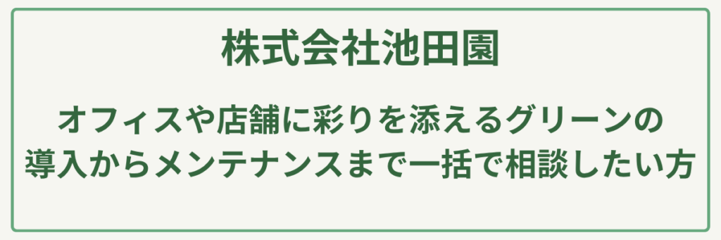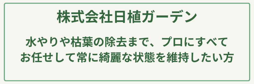 | 対応サービス | 造園設計・施工、庭園管理(剪定・維持管理)、レンタルグリーン、室内装飾 |