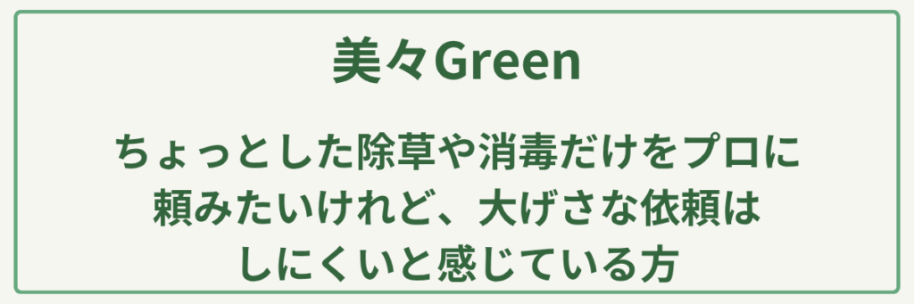 **美々Green(ビビグリーン)**は、「街に綺麗な緑を取り込む」ことを大切にしている、お庭の管理とコンサルティングの専門店です。大きな特徴は、単なる作業の代行ではなく、お客様との対話を重ねながら「一緒により良い庭造り」を目指す姿勢にあります。高木がいつまでも元気であり続けられるような適切な処置を心がけており、1時間程度の軽微な剪定や除草、薬剤散布といった短時間の作業からでも快く引き受けてくれる柔軟さが魅力です。
