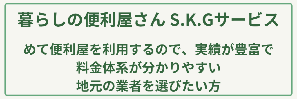暮らしの便利屋さん S.K.Gサービスは、東京都板橋区を拠点に、練馬・北・豊島区や埼玉県南部までを広くカバーする地域密着型の総合便利屋サービスです。「どこに頼んでいいか分からない」という暮らしの小さなお悩みから、ゴミ屋敷の片付けや遺品整理といった大規模な作業まで、親切・安心・格安をモットーに迅速に解決しています。