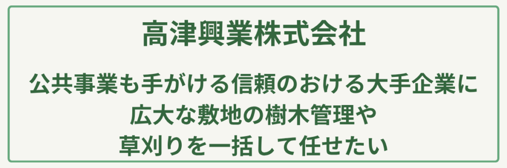| 対応サービス | 剪定・伐採・草刈り・高木伐採・年間管理・ごみ処理・その他 |