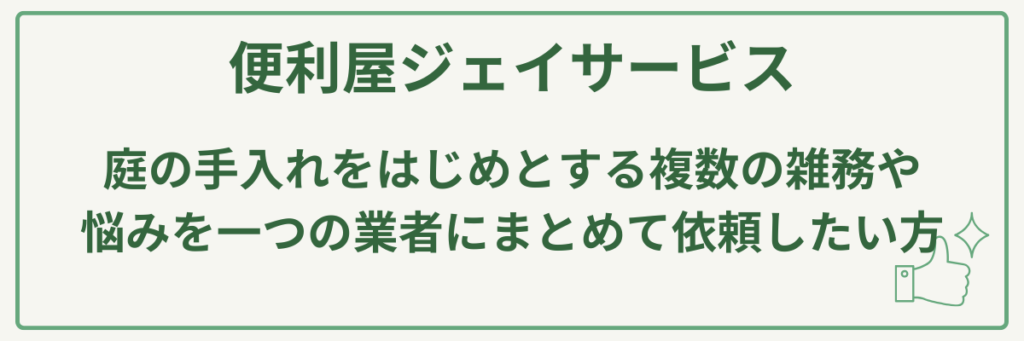 そのため、庭の手入れと外構リフォームをまとめて依頼したい方や、日々の暮らしのサポートを含め、安心して作業を任せられる地域密着の業者を探している方におすすめです。