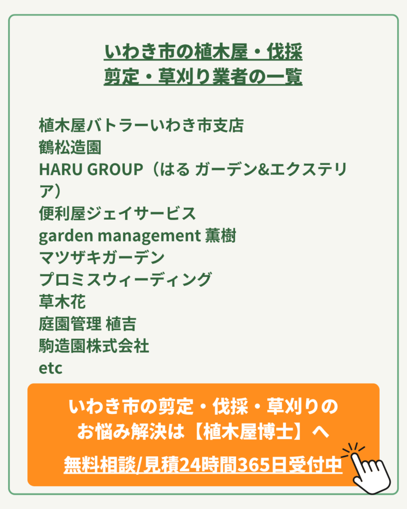 今回は、そんなお悩みを抱えるあなたに向けて、植木屋博士が、いわき市の植木屋さん達をご紹介します。