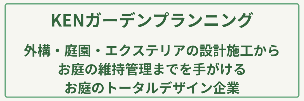 | 対応サービス | 新築/リフォーム外構一式・エクステリア工事(カーポート/物置/フェンス)・舗装工事・造園工事・植栽プランニング・ガーデンライティング・人工芝施工・家庭菜園スペース製作・坪庭/花壇造成 |