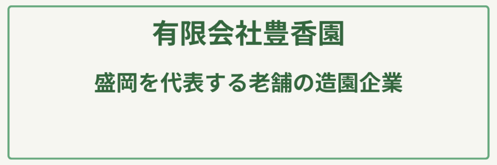 | ポイント | 慶応年間創業。150年を超える歳月の中で培われた「庭師」の技を現代に継承する、盛岡最古参クラスの歴史と信頼を誇る名門造園店/盛岡市のシンボル「石割桜」の管理を担当。歴史的価値のある樹木や庭園を守り続ける高度な専門技術は、業界内でも別格の存在感を放つ/新サービス「空き家バスターズ」を展開。県外在住で実家の庭管理ができない施主に代わり、剪定や除草を定期的に行うなど、現代のニーズに即したサポートが充実/「一つとして同じ庭はない」を信念に、オーダーメイドでの庭づくりを提案。小さな花壇から大規模な外構まで、敷地の個性を引き出す丁寧な設計・施工が魅力/盛岡市本町通という歴史あるエリアに拠点を置き、地域社会の発展と緑化に多大な貢献。公共事業も数多く手がける安定した経営基盤と誠実な対応/2022年のサイトリニューアルにより、老舗ながらもデジタルを通じた問い合わせ体制を完備。初めての依頼でも気軽に名門の技術にアクセス可能 |