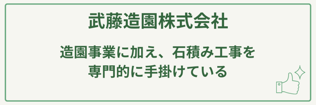 武藤造園株式会社は、造園事業に加え、石積み工事を専門的に手掛けている点が最大の強みです。