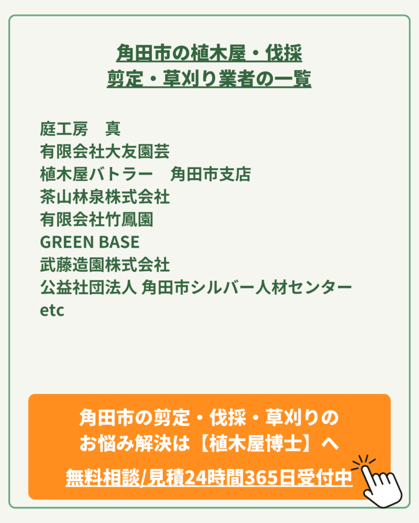 植木屋(剪定・伐採・草刈り業者)選びでお悩みの方は、是非この機会に植木屋博士の無料相談・無料見積をご活用ください。