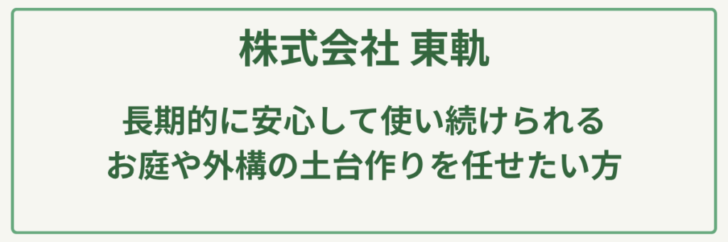 | 対応サービス | 新築外構工事、リフォーム外構、エクステリア工事、造成工事、土間コンクリート・タイル工事、フェンス・目隠し設置、ドッグラン施工 |