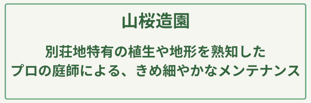 | ポイント | 南箱根ダイヤランド周辺の別荘管理実績が豊富な地域密着の庭師集団/和の伝統技術から現代的なガーデニングまで幅広く対応/樹木の個性を活かす繊細な剪定技術に定評あり/地元の気候風土を熟知した最適なメンテナンス提案/職人が直接相談に乗るアットホームで誠実な対応/Instagramでの施工発信など透明性の高い情報公開 |