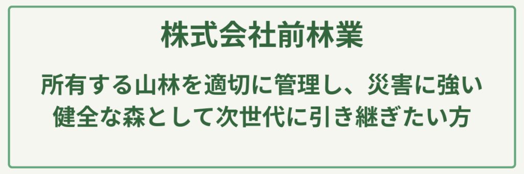 | 対応場所 | 山林所有者、林業関連団体、民間企業 |