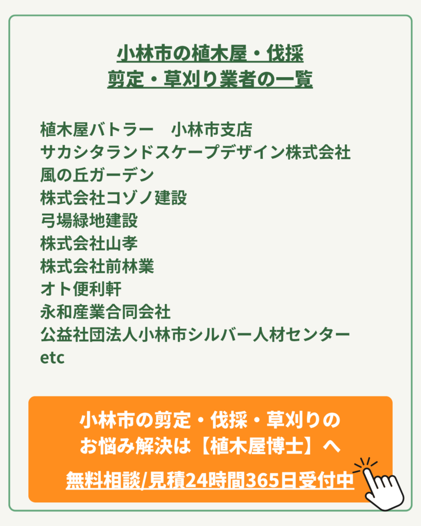 今回は、そんなお悩みを抱えるあなたに向けて、植木屋博士運営が、小林市の植木屋さん達をご紹介します。