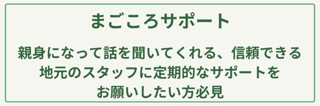 | 対応場所 | 個人宅(主にシニア世帯)・コミュニティ賃貸(まごころアパート) |