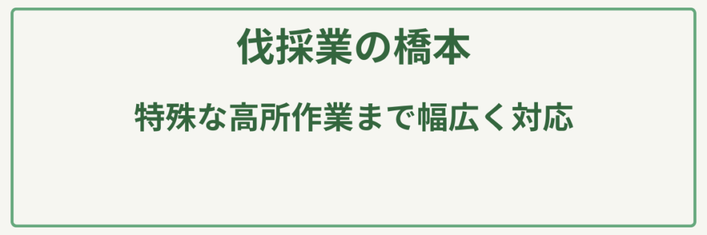 | 対応サービス | 伐採、伐根、枝打ち、枝詰め、草刈り、解体工事等 |