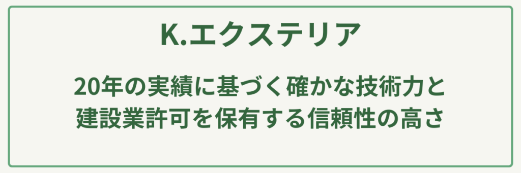 K.エクステリアは、小田原市を拠点に神奈川県全域で活躍する外構・お庭づくりのスペシャリストです。設計から施工、さらには施工後のアフターフォローまで一貫して自社で対応する**「完全自社施工」**体制を整えており、お客様の細かな要望をダイレクトに形にする高い再現力が魅力です。