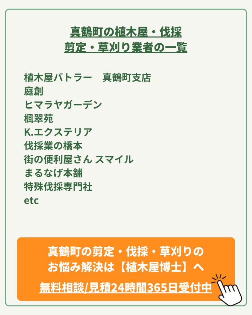 植木屋(剪定・伐採・草刈り業者)選びでお悩みの方は、是非この機会に植木屋博士の無料相談・無料見積をご活用ください。