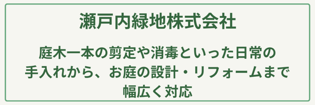 愛媛県松山市で造園業を営む瀬戸内緑地株式会社は、**「美しい未来の環境を次世代に残すこと」を理念に掲げ、SDGsへの取り組みも積極的に行う現代的で誠実な植木屋です。庭木一本の剪定や消毒といった日常の手入れから、お庭の設計・リフォームまで幅広く対応しており、「プロの視点によるきめ細やかな提案と丁寧な施工」**に大きな強みがあります。