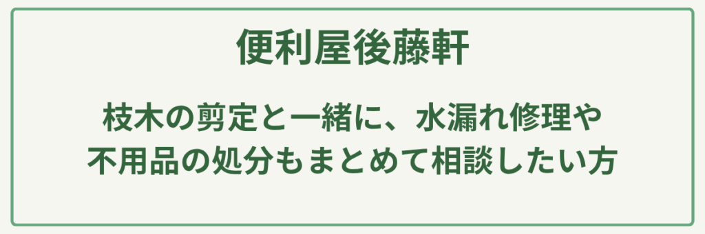 「高所の枝が電線に掛かりそうで不安な方」や「他社で断られた難しい伐採を依頼したい方」、そして「プロの品質を維持しつつ、費用を抑えてお庭をきれいにしたい方」に非常におすすめの植木屋です。親切・丁寧な接客にも定評があり、初めての方でも気軽に見積もり相談ができる信頼の窓口となっています。