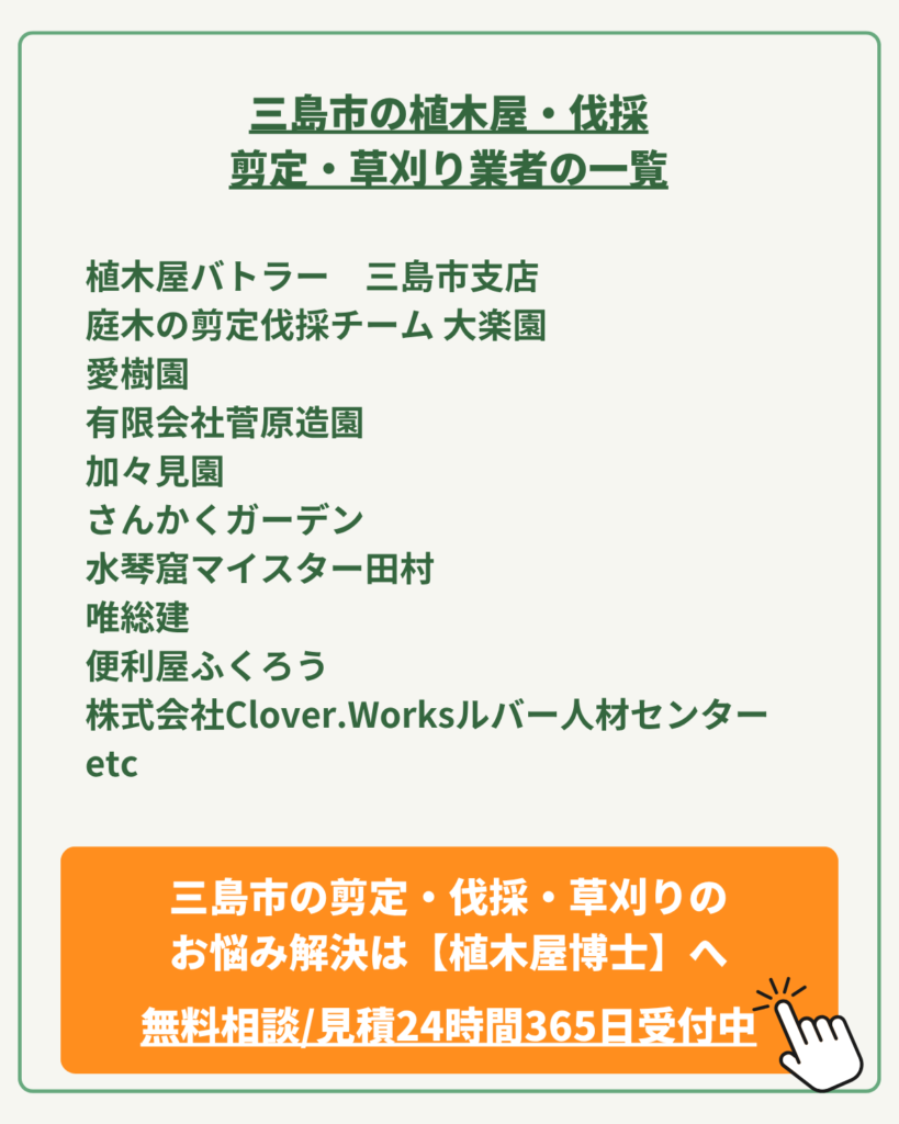 今回は、そんなお悩みを抱えるあなたに向けて、植木屋博士運営が、三島市の植木屋さん達をご紹介します。