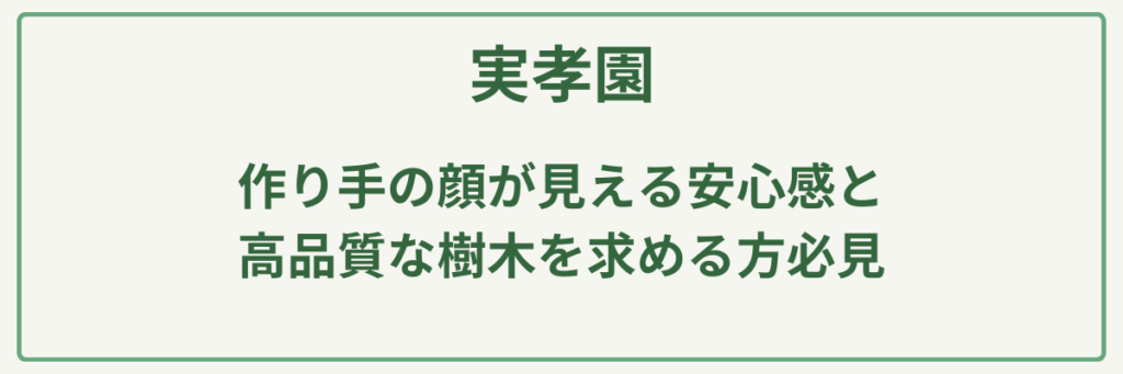 東京都三鷹市で40年にわたり、植木の生産・販売・植栽を手掛けてきた実孝園(みたかえん)は、「自社生産の高品質な植木を直接選んで購入できる」という生産農家ならではの強みを持つ植木屋です。種まきや挿し木から数年かけて大切に育てられた樹木は、その一本一本に職人の想いが込められており、植栽後の生育状況の良さにも定評があります。