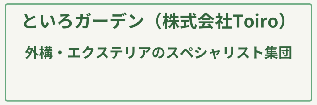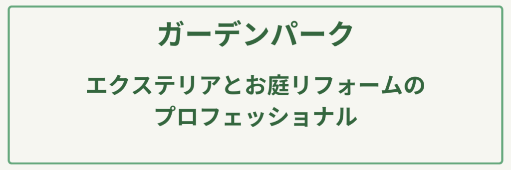 | 対応サービス | 外構工事・エクステリア、ガーデンデザイン、庭のリフォーム、テラス工事、アイアン門扉、シャッターゲート、擁壁工事 |