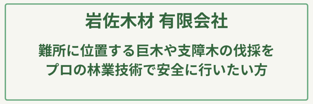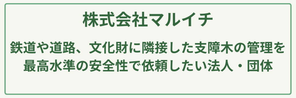 | 対応場所 | 山林所有者、自治体、法人(製材所・エネルギー関連)、個人宅(大規模な支障木) |