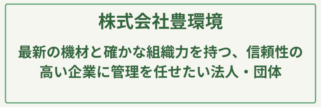| 対応場所 | 個人宅(庭園)、公共公園、自治体、店舗、工場・事業所 |