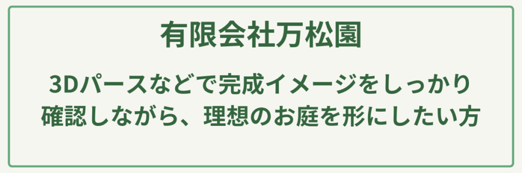 | 対応サービス | 造園設計・施工、庭園メンテナンス(剪定・手入れ)、石積み、商業施設・店舗の植栽デザイン、オンライン相談 |