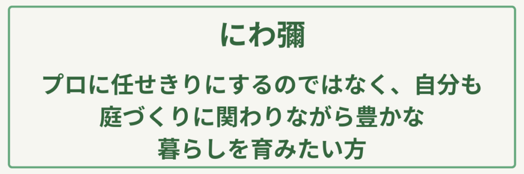 植木屋・造園業のDXを通して、優良業者と消費者をマッチングさせることで、消費者の皆様が利用後もご満足頂き・掲載されている業者様も気持ち良く仕事をして頂く、そしてその好循環の繰り返しによって、造園業界全体がより良くなる「造園業界の三方よし」を実現することをミッションに本サイトを運営しております。