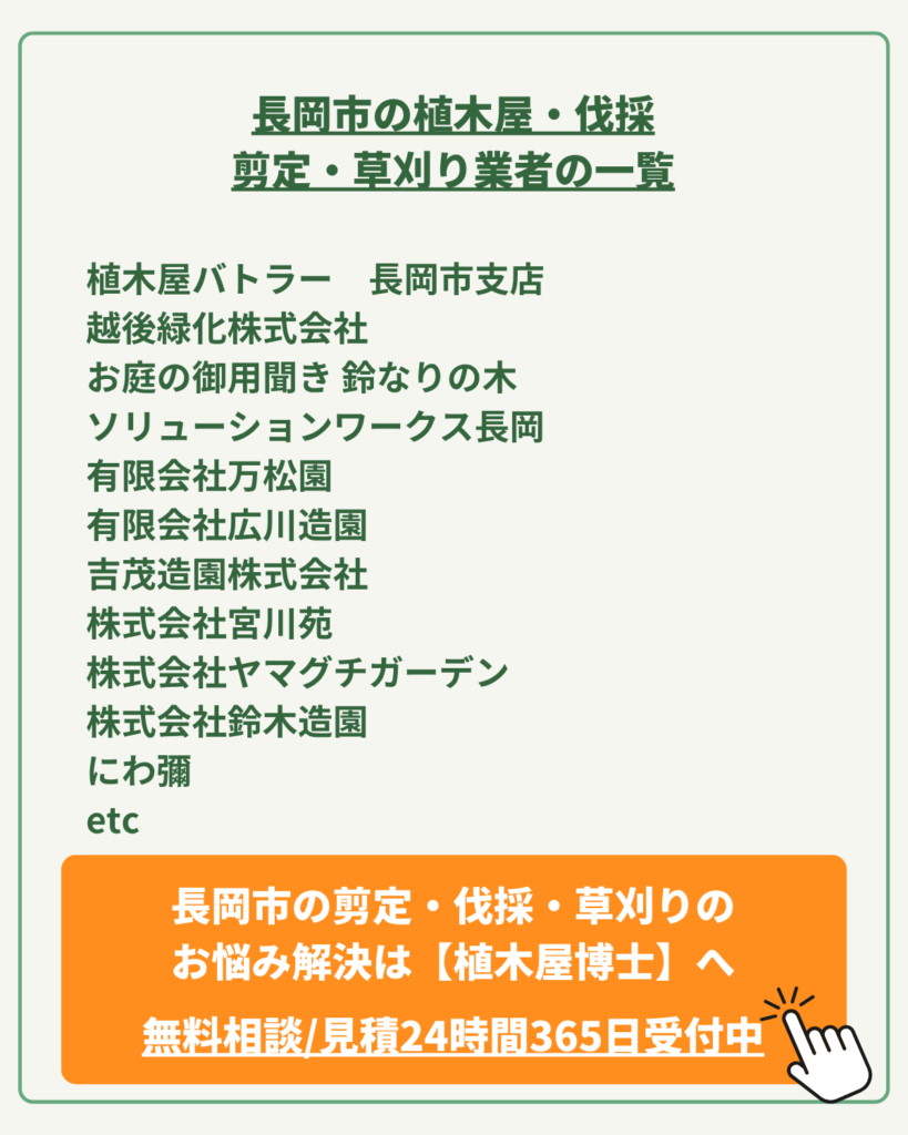 今回は、そんなお悩みを抱えるあなたに向けて、植木屋博士運営が、長岡市の植木屋さん達をご紹介します。