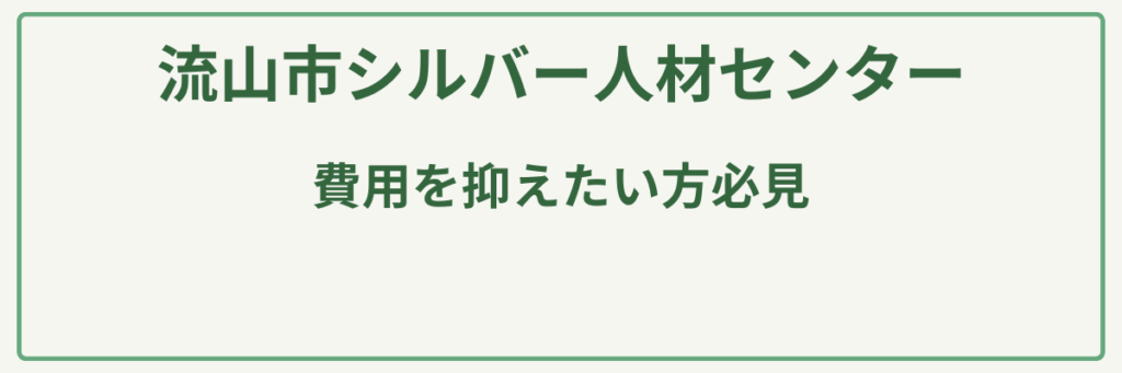 | ポイント | 流山市唯一の公益社団法人/地域貢献を目的とした安心の料金設定/熟練の会員による丁寧な作業/「自主・自立、共働・共助」の理念に基づく運営/見積無料/シルバー保険加入による安心の保証 |