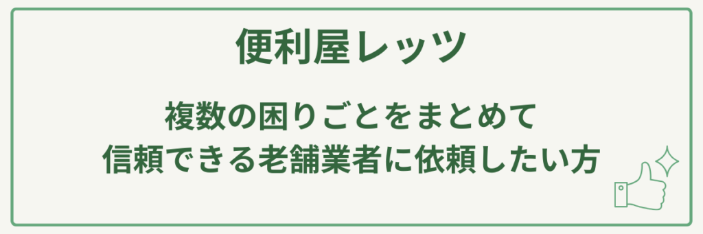 このため、庭の手入れを含め、不用品や大掃除、解体など複数の困りごとをまとめて信頼できる老舗業者に依頼したい方や、明確な料金提示と資格に基づいた確かな技術を求める方に特におすすめの植木屋・便利屋です。