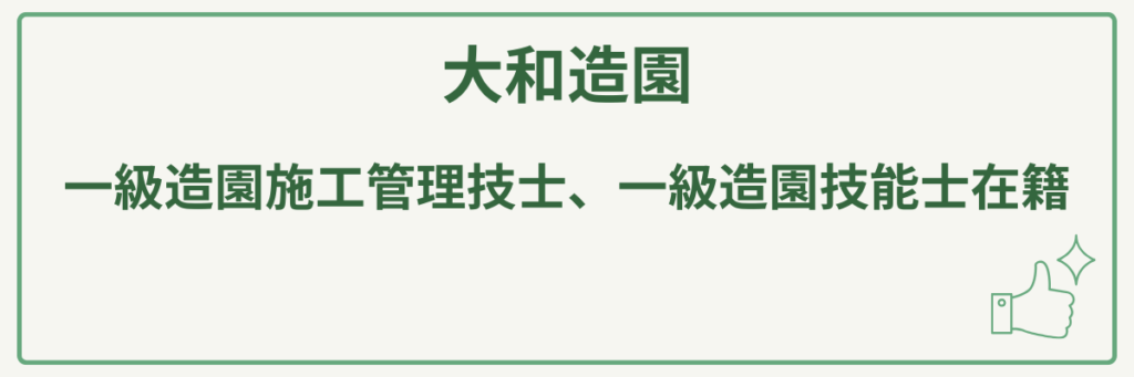 | ポイント | 1級造園施工管理技士、1級造園技能士、2級土木施工管理技師在籍 |