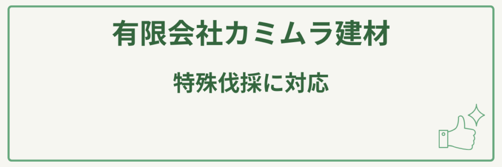 有限会社カミムラ建材は、特殊伐採を含む専門的な伐採業務を最新機器と豊富な経験を活かして安全かつ効率的に行うことを最大の強みとしています。