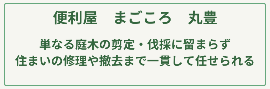 剪定・伐採・草刈りなど幅広いお庭のお困りごとを解決に導いてくれます。