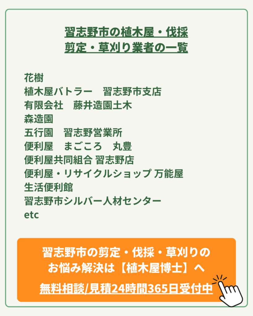 今回は、そんなお悩みを抱えるあなたに向けて、植木屋バトラー運営が、習志野市の植木屋さん達をご紹介します。