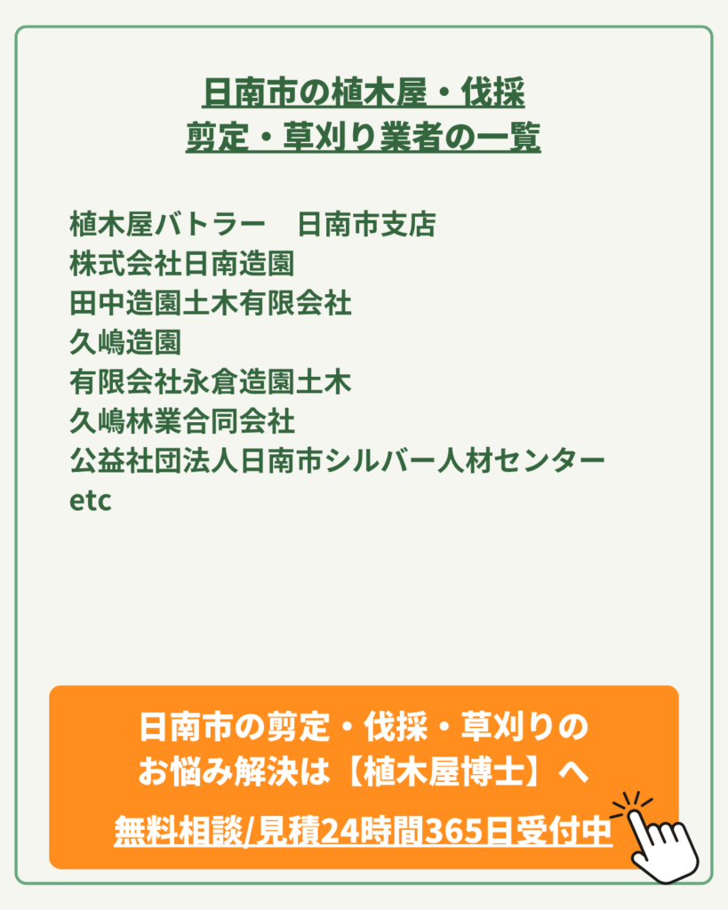 今回は、そんなお悩みを抱えるあなたに向けて、植木屋博士運営が、日南市の植木屋さん達をご紹介します。