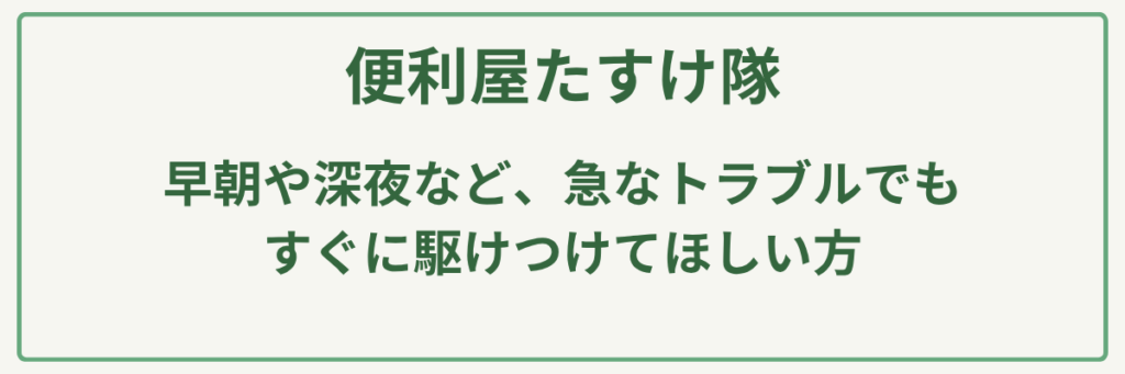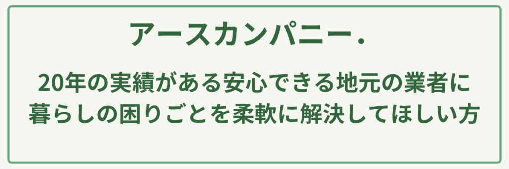 | 対応場所 | 一般戸建住宅、アパート・マンション(オーナー対応含む)、法人、空き家管理 |