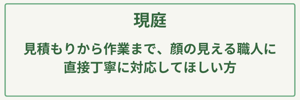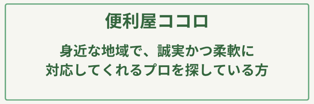 | 対応場所 | 一般戸建住宅、地域密着の個人依頼 |