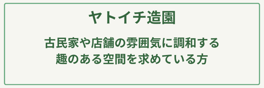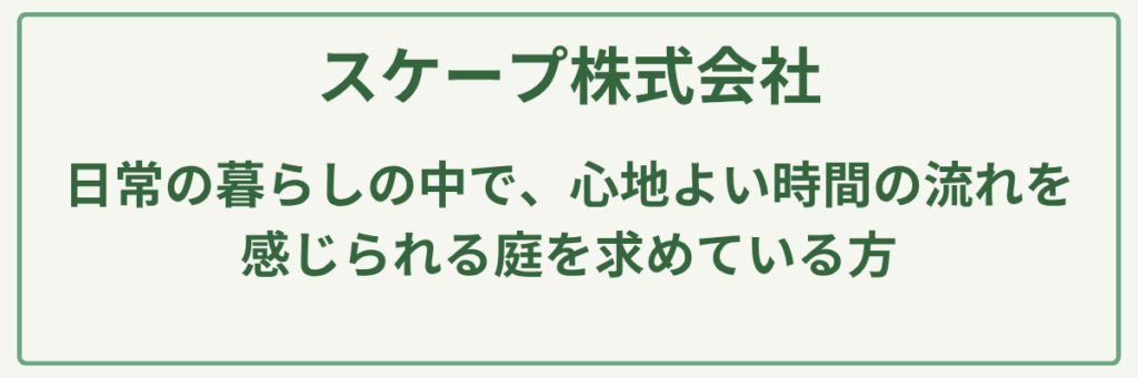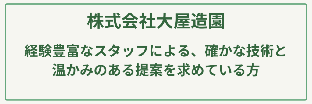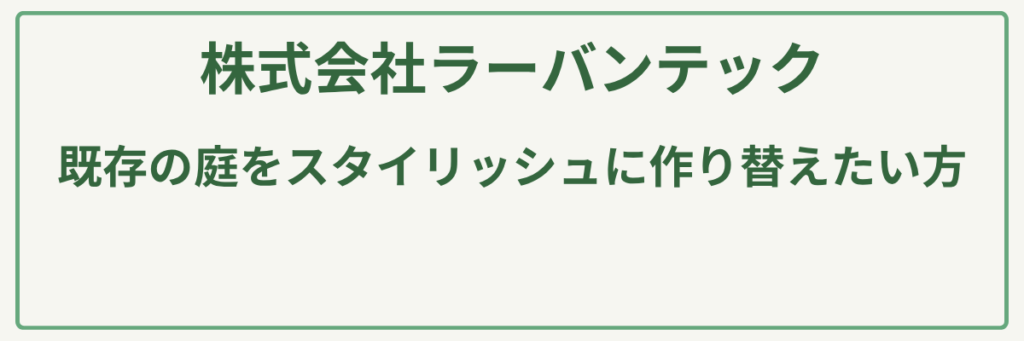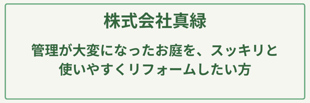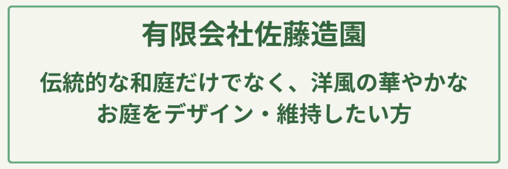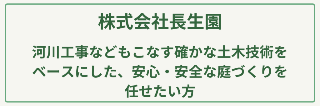 | 対応サービス | 外構・エクステリア工事、造園設計施工、庭のリフォーム、植栽管理、シンボルツリー提案 |
