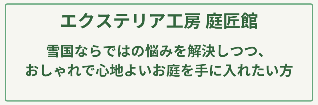 | 対応サービス | 造園設計施工、庭のリフォーム、庭木の剪定(1本〜)・伐採・植え替え、草刈り、芝生管理、樹木消毒、雪対策、外構・エクステリア工事 |