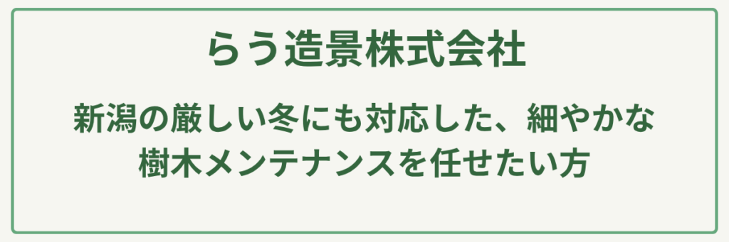 | ポイント | 新潟市内に特化した地域密着型のお庭管理。地元の気候や環境に合わせた、きめ細やかなメンテナンスが強み/冬囲いや除雪といった、新潟の冬を乗り切るために不可欠な作業にも対応。年間を通じたお庭のパートナーとして最適/「日和山相談所」という名称の通り、お庭に関する困りごとを気軽に相談できる体制。見積もりベースの誠実な料金体系/造園技能講習の紹介も行うなど、確かな技術知識に基づいた安全・丁寧な施工管理が魅力 |