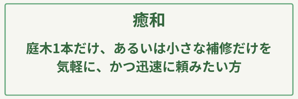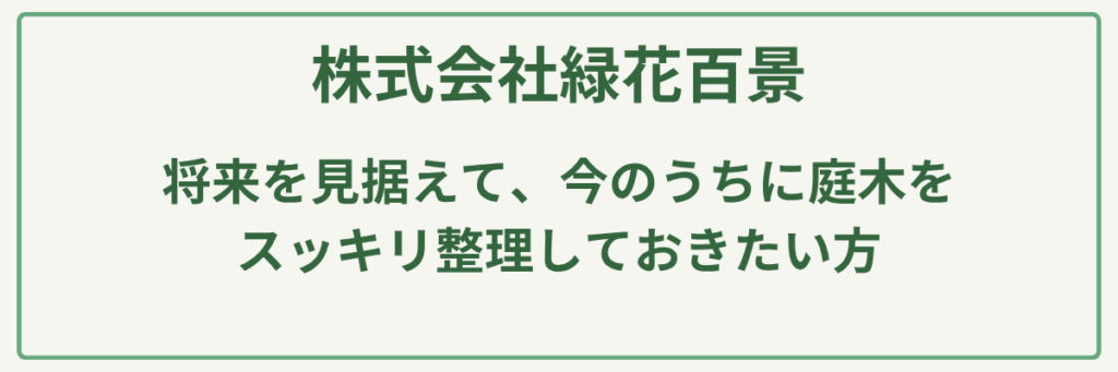| 対応サービス | 庭木の剪定、伐採、外構工事、お庭の維持管理・相談 |