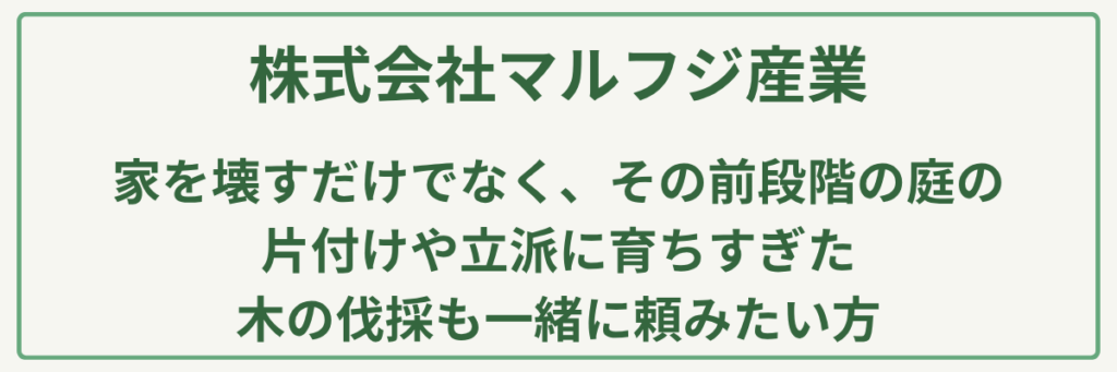 | 対応サービス | 住宅解体工事、内部解体、草刈り・伐採、害虫駆除、不用品回収、遺品整理・生前整理、仮設足場、外壁・屋根塗装 |