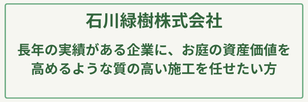 新潟県新潟市西区を拠点とする石川緑樹株式会社は、「みどりと向き合い50年」の歩みの中で培われた、確かな信頼と実績を誇る総合造園会社です。公共施設の緑化工事や緑化木の生産・販売から、民間企業の工場緑化、個人邸の庭園設計・施工・管理まで、造園に関するあらゆる業務をプロフェッショナルな視点で手がけています。 「お客様の立場に立ってより良いものを提供する」ことを信条としており、樹木医や造園技能士といった専門資格を持つスタッフが、新潟の気候や環境に最適な「みどりの創造」をサポートしています。「長年の実績がある企業に、お庭の資産価値を高めるような質の高い施工を任せたい方」や「公共事業も手がける技術力で、お庭の植栽管理から土木工事まで一貫してお願いしたい方」に非常におすすめの造園店です。