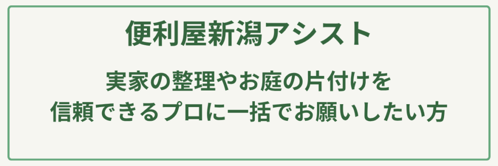 新潟市西区を拠点とする「便利屋新潟アシスト」は、「暮らしの『困った!』を迅速・丁寧に解決」することをモットーに、遺品整理や不用品回収、お庭のメンテナンスまで幅広く手がける地域密着型の便利屋サービスです。