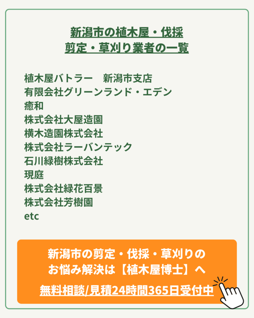 今回は、そんなお悩みを抱えるあなたに向けて、植木屋博士運営が、新潟市の植木屋さん達をご紹介します。