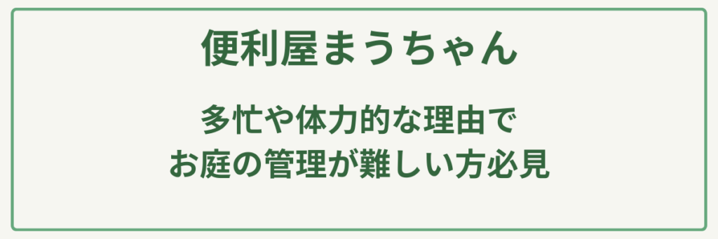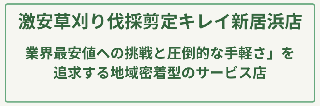 | 対応サービス | 草刈り・草むしり・剪定・伐採・不用品回収・家事代行 |