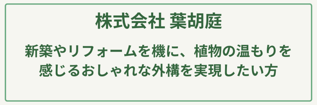 延岡市大野町を拠点とする「株式会社 葉胡庭」は、「植物と暮らす、心豊かな住まい」を形にする、洗練されたデザインが魅力の造園・エクステリア専門店です。単にお庭を整えるだけでなく、その場所で過ごす時間そのものをデザインすることに重きを置いており、植物の力で住環境をより美しく、心地よいものへと変える提案を得意としています。